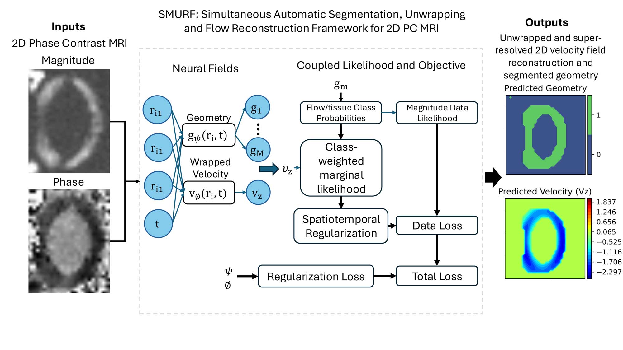 This project adapts the SMURF measurement-model approach to 2D phase-contrast MRI. The goal is to infer a geometry representation and a velocity field on 2D slices while accounting for phase artifacts and noise.